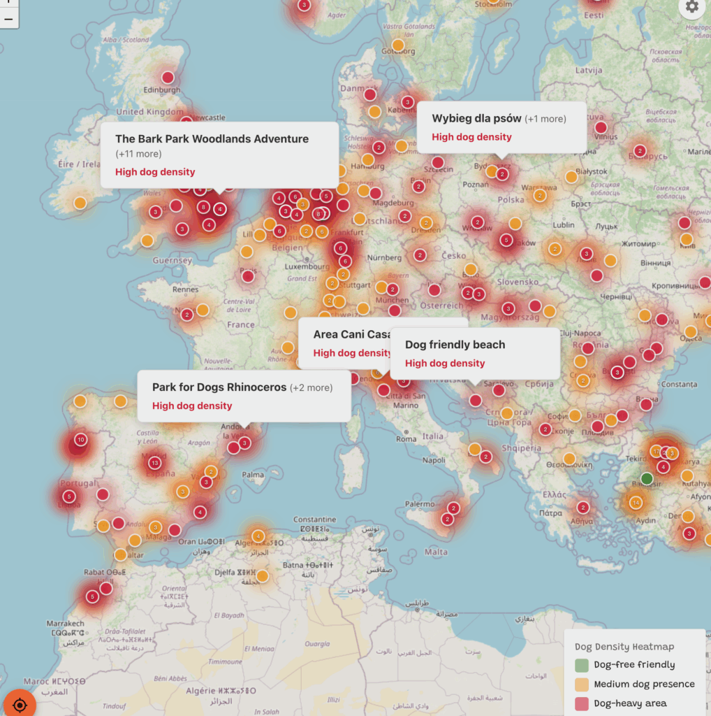 - Use Interactive Maps – See dog density in different areas, from none to high.